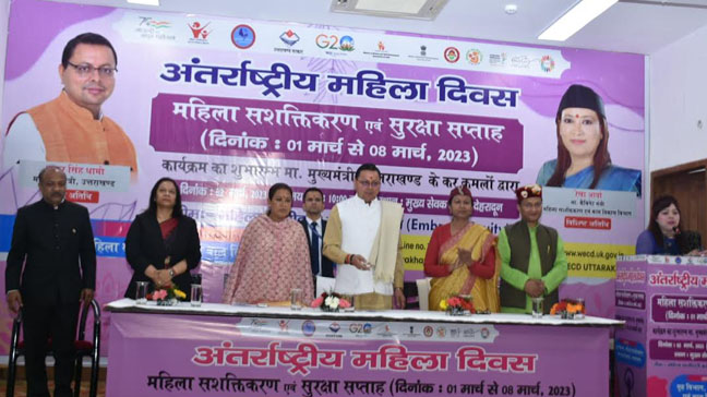 देहरादून/उत्तराखण्ड: 02 MARCH.. 2023, खबर… राजधानी से ब्रहस्पतिवार को देहरादून स्थित मुख्यमंत्री आवास स्थित मुख्य सेवक सदन में मुख्यमंत्री पुष्कर सिंह धामी ने अन्तरराष्ट्रीय महिला दिवस के अन्तर्गत महिला सशक्तिकरण एवं सुरक्षा सप्ताह के शुभारंभ एवं ‘महिला भागीदारी को प्रोत्साहन’ में यह बात प्रतिभाग किया।