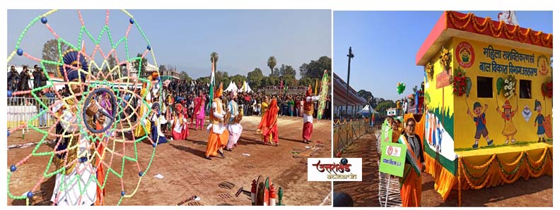 वही इस मौके पर द्वितीय गढ़वाल राइफल्स, सीआरपीएफ, आईटीबीपी, उत्तराखण्ड पुलिस, आई.आर.बी द्वितीय, उत्तराखण्ड विशेष पुलिस, उत्तराखण्ड विशेष पुलिस (महिला), होमगार्ड, पीआरडी, एनसीसी ब्वॉइज, एनसीसी गर्ल्स ने भव्य परेड में प्रतिभाग किया। परेड करने वाली टुकड़ियों में प्रथम स्थान पर द्वितीय प्लाटून केन्द्रीय रिजर्व पुलिस बल, द्वितीय स्थान पर प्रथम दस्ता गढ़वाल राइफल्स और तृतीय स्थान पर 5वीं प्लाटून उत्तराखंड महिला दल रहीं। इस अवसर पर विभिन्न सांस्कृतिक दलों द्वारा छोलिया, गढ़वाली, भांगडा, कौथिक, बसन्त, हारूल, नृत्य का प्रदर्शन किया गया। जिसका उपस्थित दर्शकों ने खूब आनंद लिया।