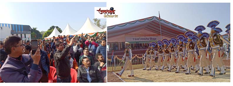 देहरादून/उत्तराखण्ड: 26-JAN.. 2023, खबर…. राजधानी से गुरूवार को देहरादून परेड ग्राउंड में आयोजित 74 वें गणतंत्र दिवस समारोह में राज्यपाल उत्तराखण्ड लेफ्टिनेंट जनरल गुरमीत सिंह (से नि) ने राष्ट्रीय ध्वज फहराया तथा राष्ट्रीय ध्वज को नमन करते हुए परेड की सलामी ली। इस अवसर पर सीआरपीएफ, आई.टी.बी.पी., पुलिस, पीएसी, होमगार्ड, पीआरडी के जवानों सहित एन.सी.सी की टुकड़ियों ने परेड करते हुए राज्यपाल को सलामी दी। राज्य के लोक कलाकारों व विभिन्न स्कूली बच्चों ने भी विभिन्न सांस्कृतिक लोक नृत्य का मनोहारी प्रदर्शन किया। इस दौरान 74 वें गणतंत्र दिवस के अवसर पर राज्यपाल लेफ्टिनेंट जनरल गुरमीत सिंह (से नि) व मुख्यमंत्री पुष्कर सिंह धामी ने उत्तराखण्ड पुलिस के ‘विजन डॉक्यूमेंट’ का अनावरण किया। इस अवसर पर उत्कृष्ट प्रदर्शन करने वाले पुलिस कर्मियों को उनकी सराहनीय सेवाओं के लिए सम्मानित किया गया।(सूची संलग्न है।)