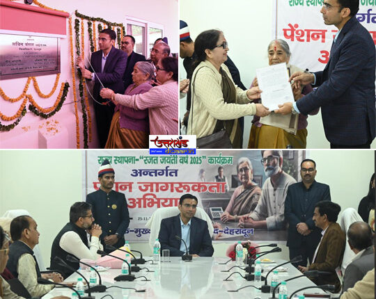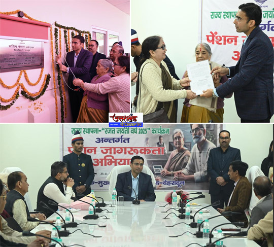 उत्तराखण्ड: 25 Nov. 2025 मंगलवार को देहरादून। दून जनपद के जिलाधिकारी सविन बसंल ने राज्य स्थापना की रजत जयंती पर 25 नवंबर,2025 को मुख्य कोषागार देहरादून में पेंशन जागरूकता एवं निःशुल्क चिकित्सा शिविर का शुभारंभ करते हुए राज्य आंदोलनकारी पेंशनरों को सम्मानित किया। इस मौके पर जिलाधिकारी ने मुख्य कोषागार में पेंशनरों की सुविधा के लिए जिला प्लान से 25 लाख लागत में नवनिर्मित ‘‘आरोहण’’ सभागार का लोकापर्ण भी किया और मुख्य कोषागार कार्यालय को 10 नए कम्प्यूटर देने की स्वीकृति भी प्रदान की।