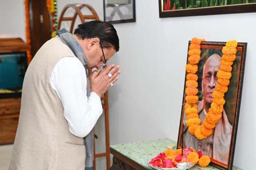 CMउत्तराखंड: 15 Dec.2025,सोमवार को देहरादून । मुख्यमंत्री आवास में उत्तराखंड मुख्यमंत्री श्री पुष्कर सिंह धामी ने अखंड भारत के शिल्पकार, महान स्वतंत्रता सेनानी एवं ‘ सरदार वल्लभभाई पटेल जी की पुण्यतिथि पर उनके चित्र पर पुष्पांजलि अर्पित कर उन्हें भावपूर्ण श्रद्धांजलि दी।