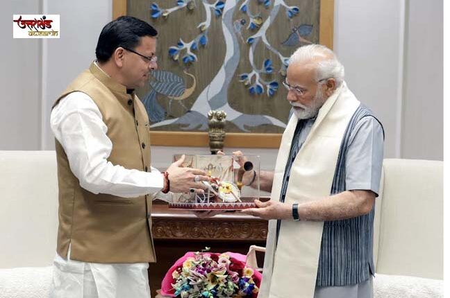 नई दिल्ली /उत्तराखण्ड: 31 JULY .. 2023, खबर… राजधानी से सोमवार को नई दिल्ली में प्रधानमंत्री श्री नरेन्द्र मोदी से मुख्यमंत्री पुष्कर सिंह धामी ने शिष्टाचार भेंट कर उत्तराखंड के विकास में उनके मार्गदर्शन और सहयोग के लिए आभार व्यक्त किया। वही मुख्यमंत्री ने प्रधानमंत्री को स्थानीय भांग के रेशे की शॉल बेडू के उत्पाद तथा नंदा देवी राजजात की परम्परागत वाद्य यंत्रों ढोल, दमाऊं, रंणसिंघा युक्त प्रतिकृति भी भेंट की।
