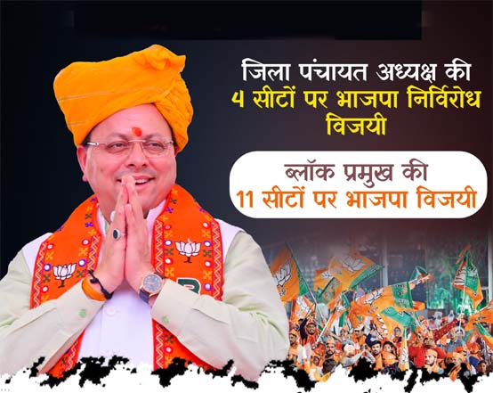उत्तराखंड:11 अगस्त 2025,सोमवार को देहरादून । स्थित उत्तराखंड में मुख्यमंत्री पुष्कर सिंह धामी की अगुवाई में भाजपा ने जिला पंचायत चुनावों में ऐसा चौका मारा कि कांग्रेस पस्त होकर मैदान से बाहर हो गई।