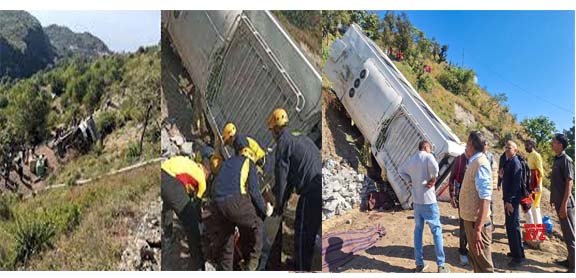 उत्तराखंड: 24 Nov.2025, सोमवार को देहरादून । उत्तराखंड -टिहरी जनपद के नरेंद्रनगर स्थित कुंजापुरी मंदिर के समीप हुई बस दुर्घटना हादसे में कई लोगों के मारे जाने और 20 से अधिक लोगों के घायल होने की खबर है।  चालक ने ब्रेक लगाने का प्रयास किया लेकिन बस पहाड़ी से टकराते हुए सौ मीटर गहरी खाई में गिर गई। मीडिया रिपोर्ट्स के अनुसार 6 घायलों को इलाज हेतु एम्स ऋषिकेश में भर्ती किया गया है।वही इस  दुर्घटना में 5 व्यक्तियों की घटनास्थल पर ही मौत की पुष्टि हो गई है. वहीं अन्य सभी घायलों को SDRF टीम द्वारा सुरक्षित रूप से निकालकर नजदीकी अस्पताल भेजा जा रहा है. टीम का रेस्क्यू एवं सर्च ऑपरेशन जारी है  वही जिसमें यात्रियों को ले जा रही एक बस अनियंत्रित होकर गहरी खाई में जा गिरी! हादसे के बाद इलाके में अफरा.तफरी का माहौल है देर शाम तक सभी घायलों की आवश्यक मेडिकल जांचें जारी थीं। इनमें से अधिकांश की स्थिति नाजुक बनी हुई है। घटना  की सूचना मिलते ही सेनानायक SDRF अर्पण यदुवंशी के निर्देशानुसार पोस्ट ढालवाला, पोस्ट कोटि कॉलोनी व SDRF वाहिनी मुख्यालय से SDRF की कुल 05 टीमें तत्काल घटनास्थल के लिए रवाना की जा चुकी है।