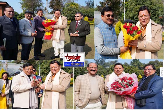 उत्तराखंड: 01 Jan.2026, ब्रहस्पतिवार को देहरादून । मुख्यमंत्री आवास पर मुख्यमंत्री श्री पुष्कर सिंह धामी से मंत्रीगणों, विधायकों, जनप्रतिनिधियों, शासन-प्रशासन एवं पुलिस विभाग के वरिष्ठ अधिकारियों-कर्मचारियों तथा प्रदेश के विभिन्न क्षेत्रों से आए लोगों ने शिष्टाचार भेंट कर उन्हें नववर्ष की शुभकामनाएँ दीं। आई.टी.बी.पी. सहित केंद्र सरकार के विभिन्न विभागों व संगठनों के उच्चाधिकारियों ने भी मुख्यमंत्री से भेंट कर उन्हें नववर्ष की शुभकामनाएं दी।