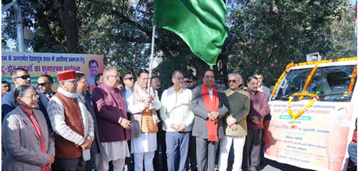 देहरादून/उत्तराखण्ड:02 JAN.–2024: मंगलवार को देहरादून स्थित न्यू कैंट रोड सीएम आवास मुख्यमंत्री कैंप कार्यालय से मुख्यमंत्री पुष्कर सिंह धामी ने ‘स्वच्छ भारत मिशन’ के अन्तर्गत देहरादून शहर में अपशिष्ट प्रबंधन के लिए 58 डोर-टू-डोर वाहनों का फ्लैग ऑफ किया। इस अवसर पर उन्होंने सेग्रिगेशन पर आधारित गीत का विमोचन भी किया।