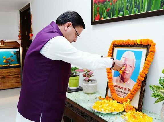 उत्तराखण्डः 18 अक्टूबर 2024, शुक्रवार को देहरादून / राजधानी स्थित मुख्यमंत्री पुष्कर सिंह धामी ने उत्तर प्रदेश एवं उत्तराखण्ड के पूर्व मुख्यमंत्री श्री नारायण दत्त तिवारी की जयंती और पुण्यतिथि पर उनके चित्र पर श्रद्धा सुमन अर्पित कर श्रद्धांजलि दी। वही इस अवसर पर मुख्यमंत्री ने कहा कि उन्होंने प्रदेश को औद्योगिक उन्नति की राह पर अग्रसर करने में महत्वपूर्ण भूमिका निभाई। उनके द्वारा किए गए विकासपरक कार्य हमारे लिए सदैव प्रेरणास्रोत रहेंगे।