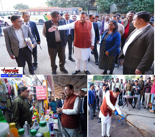 उत्तराखंड: 18 Nov.2025, मंगलवार को देहरादून / राजधानी स्थित मुख्यमंत्री श्री पुष्कर सिंह धामी ने आज दोपहर अचानक सचिवालय से सीधे आईएसबीटी देहरादून पहुंचकर वहाँ की व्यवस्थाओं का औचक निरीक्षण किया। मुख्यमंत्री के अचानक पहुँचने से प्रशासनिक अधिकारियों में हड़कंप की स्थिति बन गई। उन्होंने परिसर में स्वच्छता, यात्रियों की सुविधा, संचालन व्यवस्था और परिवहन प्रबंधन का बारीकी से निरीक्षण किया।