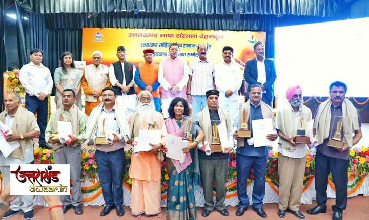 देहरादून/उत्तराखण्ड: 30 JUNE.. 2023, खबर… राजधानी से शुक्रवार को देहरादून स्थित को सर्वे चौक स्थित आई.आर.डी.टी. सभागार में आयोजित उत्तराखण्ड भाषा संस्थान द्वारा आयोजित साहित्य गौरव सम्मान समारोह तथा लोक भाषा सम्मेलन में 09 साहित्यकारों को उत्तराखण्ड गौरव सम्मान से मुख्यमंत्री पुष्कर सिंह धामी ने सम्मानित किया। उन्होंने कहा कि सम्मानित हुये साहित्यकार अपनी साहित्यिक कृतियों से हमारी लोक भाषा का मान सम्मान बढ़ाते रहेंगे। मुख्यमंत्री ने कहा कि आगामी वर्षों में भाषा संस्थान अपनी साहित्यिक एवं भाषाई गतिविधियों को व्यापक स्तर प्रदान करेगा।