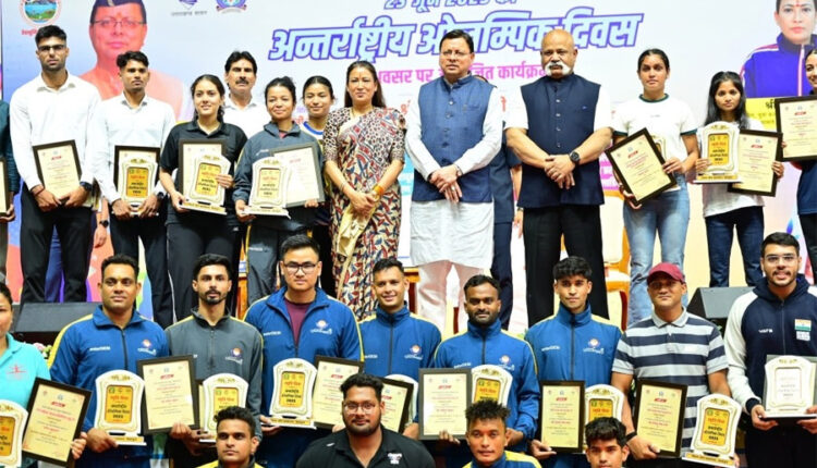 उत्तराखण्ड : 23 जून 2025 ,देहरादून। मुख्यमंत्री पुष्कर सिंह धामी ने आज अंतरराष्ट्रीय ओलंपिक दिवस के अवसर पर परेड ग्राउंड देहरादून में आयोजित कार्यक्रम में प्रतिभाग किया। इस अवसर पर मुख्यमंत्री ने अन्तरराष्ट्रीय और राष्ट्रीय स्तर पर पदक जीतने वाले खिलाड़ियों को सम्मानित किया एवं खिलाड़ियों को खेल भावना की शपथ दिलाई।