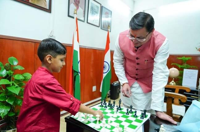 देहरादून/उत्तराखण्ड: 18 AUGUST .. 2023, खबर… राजधानी से शुक्रवार को देहरादून स्थित सचिवालय उत्तराखण्ड में मुख्यमंत्री पुष्कर सिंह धामी से हल्द्वानी निवासी सबसे कम उम्र के शतरंज खिलाड़ी तेजस तिवारी ने भेंट की। वही इस मौके पर मुख्यमंत्री धामी ने तेजस को भविष्य में शतरंज़ के क्षेत्र में नए कीर्तिमान स्थापित करने एवं उज्ज्वल भविष्य की अनंत शुभकामनाएं देते हुए कहा कि आज उत्तराखण्ड विभिन्न खेलों में देश का प्रतिनिधित्व कर रहा है, जो हम सभी के लिए गर्व का विषय है।