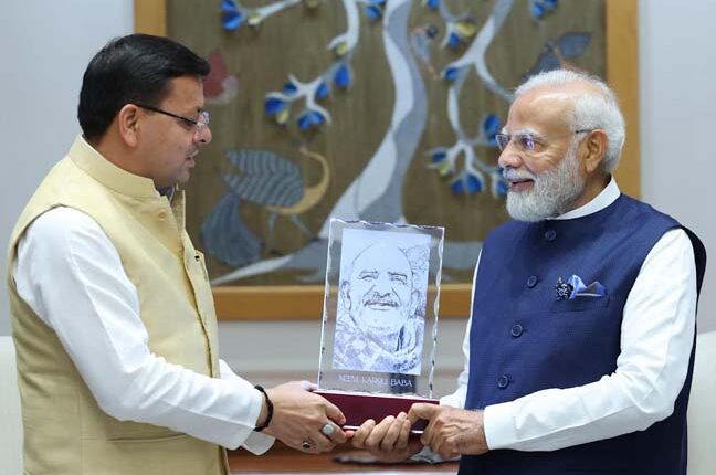 वही मुख्यमंत्री ने प्रधानमंत्री जी को बाबा नीब करौरी जी का चित्र और उत्तराखंड का बासमती चावल भेंट किया।