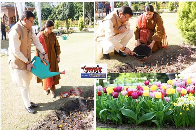 देहरादून/उत्तराखण्ड: 07 Dec.–2023: खबर…. राजधानी से बृहस्पतिवार को देहरादून स्थित मुख्यमंत्री आवास परिसर में मुख्यमंत्री पुष्कर सिंह धामी द्वारा सपत्नीक, ट्यूलिप की 17 प्रजातियों के 4000 बल्ब के रोपण कार्यक्रम की शुरूआत की। पिछले वर्ष सीएम आवास परिसर में ट्यूलिप की 4 प्रजातियों के 400 बल्ब रोपित किए गए थे।