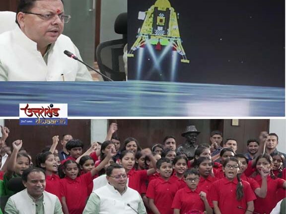 देहरादून/उत्तराखण्ड: 23 AUGUST-2023: खबर… राजधानी से बुद्धवार को देहरादून स्थित सचिवालय स्थित वीर चंद्र सिंह गढ़वाली सभागार में मुख्यमंत्री पुष्कर सिंह धामी ने शासन के उच्चाधिकारियों, विद्यालयी शिक्षा विभाग के अधिकारियों व स्कूली छात्र-छात्राओं के साथ चंद्रयान-3 के चंद्रमा के दक्षिणी ध्रुव पर ऐतिहासिक सफल लैंडिंग का सजीव प्रसारण को देखा। सभी ने देश के यशस्वी प्रधानमंत्री माननीय नरेंद्र मोदी जी का सम्बोधन सुना व देखा।