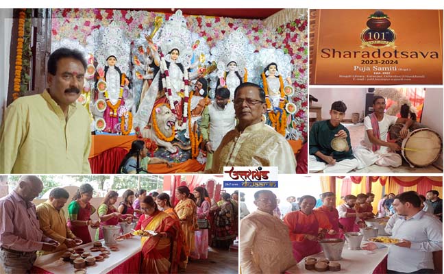 देहरादून/उत्तराखण्ड: 22, Oct.–2023: खबर…. राजधानी से रविवार को देहरादून स्थित बंगला साहित्य समिति भवन बंगाली लाइब्रेरी करनपुर देहरादून में वर्ष 1922 से आज वर्ष 2023 में 101 वर्ष पूरे होने पर बड़े हर्षोल्लास के साथ दुर्गा महोत्सव मनाया जा रहा है। वही जिसमें बंगाली लाइब्रेरी पूजा समिति के अध्यक्ष आर. एन. मित्रा एवं महामंत्री आलोक चक्रवर्ती ने जानकारी दे हुए कहा कि 20 अक्टुबर 2023, से शुभ मुर्हत में पूजा प्रारंभ की गई। वही जिसमें आज 22 अक्टुबर 2023, को बंगाली लाइब्रेरी दुर्गा पंडाल में शारदीय नवरात्रि की अष्टमी पूजन विधि विधान से किया गया।