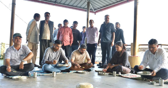 उत्तराखंड: 20 सितंबर. 2025, शनिवार को देहरादून / राजधानी स्थित  देहरादून जनपद के डीएम  सविन बंसल एवं जिला स्तरीय अधिकारियों, कार्मिकों ने आपदा प्रभावित क्षेत्र फुलेत, छमरोली, सिमयारा, क्यारा का भ्रमण किया। भ्रमण/निरीक्षण उपरान्त ग्रामवासियों ने जिलाधिकारी से भोजन करने का अनुरोध किया जिस पर जिलाधिकारी सविन बंसल ने अन्य अधिकारियों ने ग्रामीणों के साथ जमीन पर बैठकर सामूहिक भोजन किया।