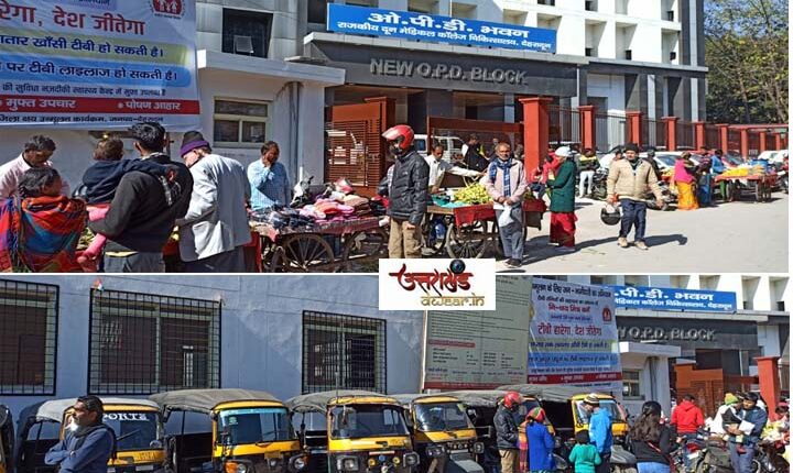 जिसमें घंटो लाईन में कुछ मरीज खाली पेट के साथ वही तिमारदार भी भूखे प्यासे खड़े होकर तब जाकर (OPD) ओपीडी पर्ची बनती हैं। और फिर इतनी मशक्कत के बाद मरीज व उसके साथ तिमारदार इसी तरह पूरा दिन इसी अस्पताल में खप जाता है। वही मरीज व उसके साथ तिमारदार एवं डॉक्टर, स्टाफ, अन्य स्वास्थ्यकर्मीयों सहित यह टूव्हिलर, कार, ऑटो,रिक्शा व साईकिल आदि से यह आने वाले लोगो से भीड़ बढ़ जाती है। वही इस दौरान दूनअस्पताल की इस न्यू ओपीडी बिल्डिंग में एंबुलैंस एव शासन प्रशासन की गाड़ी अंदर आने में पहले गेट पर ही जाम में फंस जाती है। और फिर डियूटी पर तैनात गार्ड को हर कोई खरी – खरी एवं धौंस सुनाकर चला जाता है।