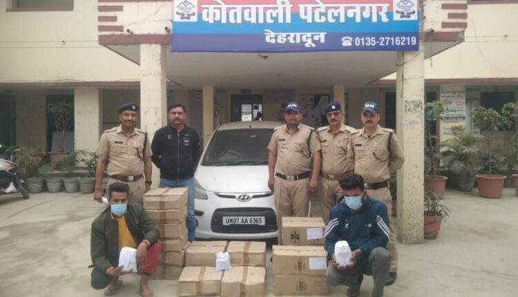 देहरादून। 24-03-2024 आज रविवार को देहरादून स्थित कोतवाली पटेलनगर क्षेत्र में होली के पर्व के दौरान आगामी लोक सभा निर्वाचन 2024 के दृष्टिगत वरिष्ठ पुलिस अधीक्षक देहरादून द्वारा सभी अधीनस्थों को अपने-अपने क्षेत्र में अवैध नशा/मादक पदार्थों की तस्करी तथा अवैध धन की रोकथाम हेतु प्रभावी चैकिंग सुनिश्चित करने के निर्देश दियेे गये हैं। इसी क्रम में दिनांक 23-03-2024 को कोतवाली पटेलनगर पुलिस द्वारा कमला पैलेस तिराहा से सेन्ट जूज चैक की ओर जीएमएस रोड पर चैैकिंग के दौरान 02 अभियुक्तो को 576 पव्वे (12 पेटी) स्पेशल जाफरान देशी शराब मसालेदार, 144 पव्वे (3 पेटी) अग्रेजी शराब MCDOWELLS NO 1 व्हिस्की व 96 पव्वे (2 पेटी) अग्रेजी शराब 8 PM स्पेशल ग्रीन व्हिस्की व घटना मे प्रयुक्त वाहन (हुंडई I-10 UK07AA6365) के साथ गिरफ्तार किया गया, अभियुक्तो के विरुद्ध आबकारी अधिनियम के अंतर्गत अभियोग पंजीकृत किया गया है।