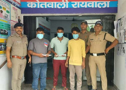 वायरल वीडियो की जांच में उक्त वीडियो छिद्दरवाला फ्लाई ओवर के पास का होने की जानकारी प्राप्त हुई, जिस पर रायवाला पुलिस द्वारा वीडियो में दिख रहे युवकों के सम्बन्ध में जानकारी हेतु सुरागरसी/ पतारसी करते हुए मुखबिर तंत्र को सक्रिय किया गया तथा मुखबिर से प्राप्त सूचना के आधार पर वीडियो में दिख रहे 03 युवकों 1- दीपक पुत्र रामू 2- भूपेन्द्र उर्फ भूरे पुत्र स्व0 राजू तथा 3- दीपांशु पुत्र महिपाल सिंह को गिरफ्तार किया गया। अभियुक्त भूपेन्द्र उर्फ भूरे तथा दीपांशु के कब्जे से पुलिस टीम को वीडियो में दिख रहे 02 अवैध देसी तमंचे बरामद हुए।