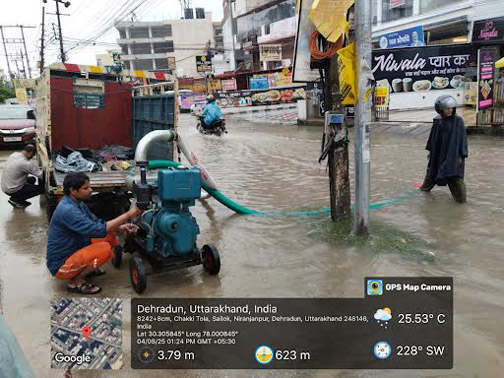 उत्तराखण्ड: 04 अगस्त 2025 सोमवार को देहरादून /राजधानी में जनपद के बारिश के कारण दून के शहर के प्रमुख चौक चौराहों पर जलभराव की सूचना मिलने पर त्वरित कार्रवाई करते हुए स्थिति को सामान्य किया गया। दून शहर में बारिश के कारण माता मंदिर रोड़ तिराहा, प्रिंस चौक और जोगीवाला लेन नंबर-4 और आईटीबीपी रोड पर जलभराव की सूचना मिलने पर जिला प्रशासन की क्यूआरटी ने त्वरित कार्रवाई करते हुए पानी की निकासी की गई।