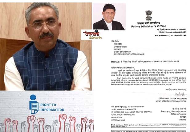 वही इस दौरान अब प्रधानमंत्री कार्यालय ने इस मामले को संज्ञान में लिया है। वही नई दिल्ली पीएमओ के अनुभाग अधिकारी विवके प्रकाश ने मुख्य सचिव उत्तराखण्ड सरकार डा. एसएस संघु को पत्र लिखकर कहा है कि एडवोकेट विकेश नेगी की याचिका पर उन्हें जवाब दिया जाएं और उसकी एक कापी पोर्टल पर अपलोड कर दी जाए।