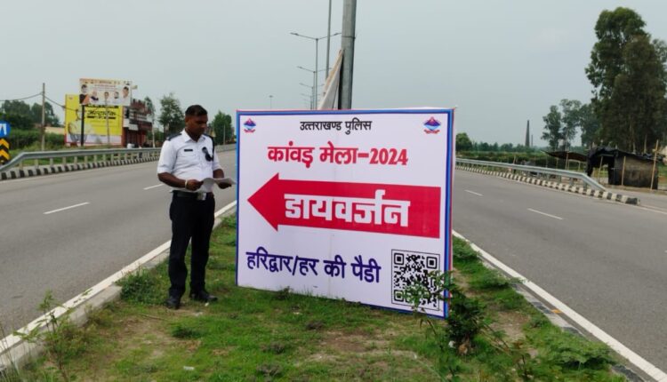 उत्तराखंड: 19 जुलाई 2024, हरिद्वार। कांवड़ यात्रा को सुगम बनाने के लिये हरिद्वार पुलिस का प्रयास जारी हैं। शिव भक्तों के मार्गदर्शन के लिये फ्लैक्सी बोर्ड लगाए गये। आगामी कांवड़ मेले के दृष्टिगत यात्रा को सुगम बनाने व शिवभक्तों के मार्गदर्शन के लिये हरिद्वार पुलिस द्वारा हरिद्वार से उत्तर प्रदेश की सीमा तक महत्वपूर्ण डायवर्सन, पार्किंग, वैकल्पिक मार्गों पर फ्लैक्सी बोर्ड लगाए गए। उक्त फ्लैक्सी बोर्डों पर कांवड़ मेले से संबंधित जानकारी अंकित की गई है जिससे किसी भी शिव भक्त को उनकी यात्रा के दौरान किसी प्रकार की समस्या उत्पन्न न हो।