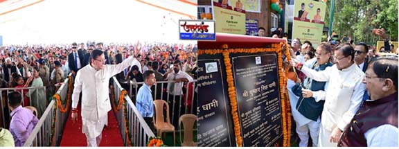 उत्तराखंड: 23 MARCH 2026, सोमवार को देहरादून / राजधानी स्थित परेड ग्राउंड, देहरादून में आज मुख्यमंत्री श्री पुष्कर सिंह धामी ने आयोजित “जन-जन की सरकार चार साल बेमिसाल, उत्तरोत्तर प्रगति पथ पर अग्रसर उत्तराखण्ड’ कार्यक्रम में प्रतिभाग करते हुए *₹ 401.86 करोड़ की लागत से कुल 74 विकास योजना का लोकार्पण एवं शिलान्यास किया।* जिसमें *₹ 99.44 करोड़ की 33 योजनाओं का शिलान्यास एवं ₹ 302.42 करोड़ की 41 विकास योजनाओं का लोकार्पण शामिल है।