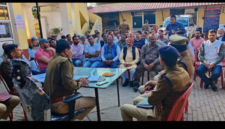 उत्तराखंड : 9 मार्च 2024 शनिवार को देहरादून स्थित मी रमजान तथा ईद-उल-फितर के पर्व के दृष्टिगत वरिष्ठ पुलिस अधीक्षक देहरादून द्वारा सभी क्षेत्राधिकारियों तथा थाना प्रभारियों को अपने-अपने सर्किल/ थाना क्षेत्रों में सीएलजी मेंबर्स तथा पीस कमेटी के सदस्यों के साथ बैठक आयोजित करने के निर्देश दिए गए है। निर्गत निर्देशो के क्रम मे आज दिनाँक 09/03/2024 को अगामी रमजान तथा ईद-उल-फितर पर्व के दृष्टिगत जनपद के नगर तथा देहात क्षेत्र के सभी थानों पर सर्वधर्म के संभ्रांत व्यक्तियों/सीएलजी मेम्बर व पीस कमेटी के सदस्यो के साथ सभी थाना प्रभारियों द्वारा गोष्ठी आयोजित की गई। गोष्ठि के दौरान आगामी त्यौहारो को पूर्व की भांति शांतिपूर्ण ढंग से मनाने तथा सांप्रदायिक सौहार्द बनाये रखने की अपील की गई। इस दौरान उपस्थित गणमान्य व्यक्तियों से आगामी पर्वो के दौरान सुरक्षा व्यवस्था व अन्य बिंदुओं पर विस्तार से चर्चा उनकी समस्याओं तथा सुझावों की जानकारी ली गई।