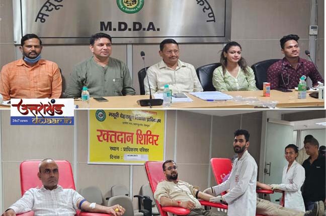 देहरादून/उत्तराखण्ड: 05 SEP. – 2023: खबर…. राजधानी से मंगलवार को देहरादून स्थित आज (MDDA-VC) उपाध्यक्ष एमएमडीए वंशीधर तिवारी की पहल पर प्राधिकरण सभागार में दून मेडिकल कॉलेज के सहयोग से एक वृहद रक्तदान शिविर का आयोजन किया गया जिसमें प्राधिकरण के अधिकारियों व कर्मचारियों ने बढ़चढ़कर भागीदारी की। वही जिसमें डेंगू के बढ़ते प्रकोप के बीच मसूरी देहरादून विकास प्राधिकरण भी मरीजों की मदद को आगे आया है।
