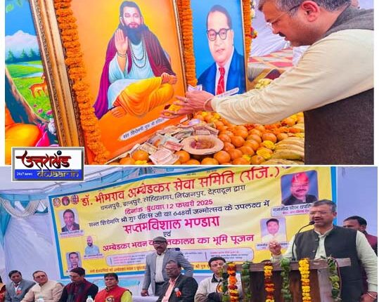 उत्तराखण्डः 12 फरवरी . 2025, बुधवार को देहरादून स्थित धर्मपुर विधानसभा के अंतर्गत डॉ भीमराव अंबेडकर सेवा समिति द्वारा संत शिरोमणि रविदास जी की 648वी जयंती मनाई गई। इस दौरान मुख्य अतिथि के रूप में नगर निगम मेयर सौरभ थपलियाल जी के द्वारा समाज सुधारक महान योगी संत शिरोमणि जी के चित्र पर पुष्पांजलि कर उनको कोटि-कोटि नमन किया।