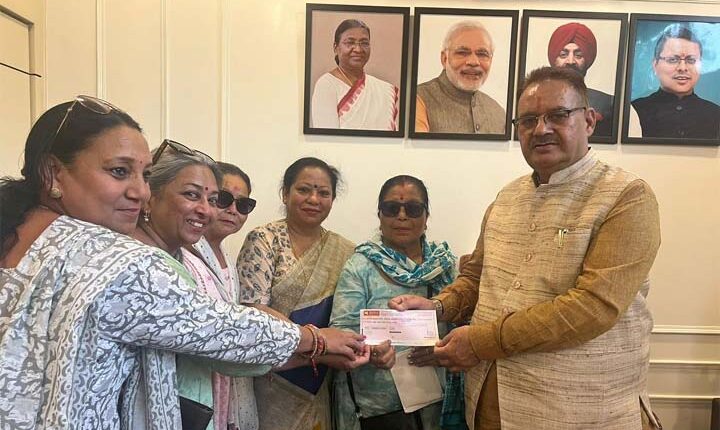 देहरादून/उत्तराखण्ड: 18 MAY.. 2023, खबर… राजधानी से गुरूवार को देहरादून स्थित कैबिनेट मंत्री गणेश जोशी ने मुख्यमंत्री पुष्कर सिंह धामी द्वारा की गई घोषणा के अंतर्गत गोर्खाली महिला हरतालिका तीज उत्सव समिति के अध्यक्ष कमला थापा और उनके साथ उपस्थित पदाधिकारियों को एक लाख पचास हजार रुपए का चैक सौंपा।