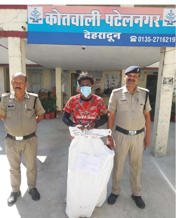 नाम पता अभियुक्त- 1-इकराम पुत्र मौहम्मद वसीर निवासी राम निवास बगीचे के अन्दर शिमला बाईपास थाना पटेलनगर जनपद देहरादून उम्र 28 वर्ष, बरामदगी माल -1- एल्युमीनियम के दरवाजे के फ्रेम के 12 टुकडे, 2- हेक्सा ब्लेड-01, 3- आरी की ब्लेड-03, 4- पेंचकस -01