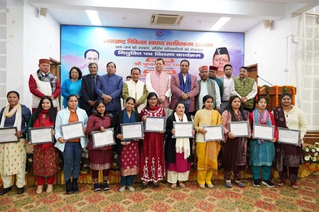 देहरादून/उत्तराखण्ड: 24 Dec.–2023: खबर…. राजधानी से रविवार को देहरादून स्थित मुख्यमंत्री आवास स्थित, मुख्य सेवक सदन में मुख्यमंत्री श्री पुष्कर सिंह धामी ने उत्तराखण्ड चिकित्सा सेवा चयन बोर्ड द्वारा चयनित नर्सिंग अधिकारियों को नियुक्ति पत्र प्रदान किये। कार्यक्रम के दौरान चयनित 1376 अभ्यर्थियों में से 200 अभ्यर्थियों को मुख्यमंत्री द्वारा नियुक्ति पत्र प्रदान किये। शेष सभी अभ्यर्थियों को स्वास्थ्य विभाग द्वारा नियुक्ति पत्र प्रदान किये गये हैं।