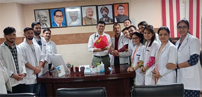 देहरादून/उत्तराखण्ड: 26 JULY .. 2023, खबर… राजधानी से बुद्धवार को देहरादून स्थित राजकीय दून मेडिकल कॉलेज से संबद्ध दून अस्पताल के नवनियुक्त मेडिकल सुपरिंटेंडेंट (MS) डॉ0 अनुराग अग्रवाल ने सोमवार को कार्यभार ग्रहण कर लिया। वहीं कार्यभार ग्रहण करने के बाद नवनियुक्त मेडिकल सुपरिटेंडेंट डॉ0 अनुराग अग्रवाल एम एस बनने की बधाई देने पहुंचे दून अस्पताल के फार्मेसिस्ट संगठन के पदाधिकारीयो ने मुलाकात कर उन्हें बधाई दी।