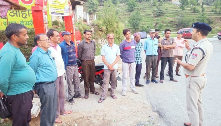 उत्तराखंड: 22 मई 2024, पिथौरागढ़। जनपद पुलिस द्वारा बृहद जनजागरुकता अभियान चलाकर स्थानीय लोगों को नशे के दुष्परिणामों से अवगत कराते हुए सरकारी वाहन में लगे लाउडहेलर के माध्यम से नशा मुक्ति संदेश चलाकर नशा न करने के लिये जागरुक किया। पुलिस मुख्यालय उत्तराखण्ड देहरादून से प्राप्त आदेश-निर्देशों के क्रम में मादक पदार्थों में लिप्त अभियुक्तों के विरुद्ध प्रभावी कार्यवाही करने तथा नशा उन्मूलन हेतु जनजागरुकता कार्यक्रम चलाये जाने हेतु सम्पूर्ण प्रदेश में विगत 1 मई से 02 माह का नशा मुक्त अभियान चलाया जा रहा है। जिसके तहत ड्रग्स फ्री देवभूमि मिशन 2025 को सफल बनाने हेतु पुलिस अधीक्षक पिथौरागढ़, श्रीमती रेखा यादव के आदेशानुसार, पुलिस उपाधीक्षक पिथौरागढ़ परवेज अली के पर्यवेक्षण में जनपद पुलिस द्वारा विभिन्न विद्यालयों, गांवों/ कस्बों व स्थानीय बाजार में जागरुकता कार्यक्रमों का आयोजन कर लोगों को नशा मुक्ति हेतु जागरूक किया जा रहा है। इसी क्रम में जनपद के समस्त थाना/ चौकी प्रभारियों द्वारा अपने- अपने थाना क्षेत्रान्तर्गत स्थानीय बाजार व भीड़- भाड़ वाली जगहों पर लोगों के साथ गोष्ठी आयोजित कर उन्हें जनपद पुलिस द्वारा चलाये जा रहे नशा मुक्ति अभियान के बारे में जानकारी दी गई तथा नशे के दुष्परिणामों से अवगत कराते हुए नशा न करने हेतु जागरुक किया गया एवं नशे के कारोबार में लिप्त लोगों की सूचना तत्काल पुलिस को देने की अपील की गई साथ ही सरकारी वाहन में लगे लाउडहेलर के माध्यम से नशा मुक्ति गीत/ संदेश चलाकर आमजन को नशा न करने हेतु प्रेरित किया गया। इसके अतिरिक्त आमजन को नये आपराधिक कानूनों के सम्बन्ध में भी विस्तृत जानकारी दी गई।