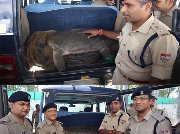 पुलिस ने प्रतिबन्धित जन्तु जिन्दा कछुआ 40kg. से अधिक वजन का कार सहित तस्कर को दबोचा!