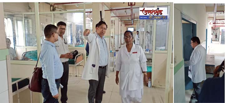 वही आज प्राचार्या प्रो./डॉ0 सयाना ने दून अस्पताल के वार्डो में भी निरिक्षण किया जिसमें पुराने प्राईवेट वार्ड के कमरें बंद पड़े और कुछ में मरम्मत कार्या चल रहा जिसमें एक बंद कमरे में जब प्राचार्या ने दरवाजा खोल कर देखा तो हैरान रह गए वही उस कमरे में एक महिला वार्ड बॉय AC चला का मोबाईल फोन देखने में मस्त दिखी जिस पर डॉ0 सयाना ने नराजगी जाहीर की। वही कुछ वार्डो में बहारी लोग समान बेचने वाले भी घूम रहे थे। जिस पर प्रो0 सयाना ने गार्ड व वार्ड नर्सिग अधिकारियों को लताड़ लगाते हुए कहा ऐसे बहारी लोग अस्पताल में नही दुबारा दिखने चाहिए। साथ अस्पताल में साफ सफाई एवं सुविधाओं पर भी ध्यान देने पर जोर डाला।