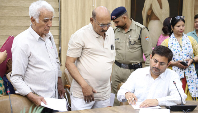 उत्तराखण्ड : 26 मई 2025 ,देहरादून। मुख्यमंत्री का संकल्प, सेवा और सुशासन एवं जिलाधिकारी सविन बंसल के निर्देशों के क्रम में सोमवार को मुख्य विकास अधिकारी अभिनव शाह की अध्यक्षता में क्लेक्ट्रेट सभागार में जनता दरबार आयोजित किया गया। जनता दरबार में जिले के विभिन्न क्षेत्रों से पहुंच लोगों ने 113 शिकायतें रखी। जिनमें से अधिकांश शिकायतों का मुख्य विकास अधिकारी ने मौके पर निस्तारण किया। उन्होंने अधिकारियों को जन समस्याओं का त्वरित समाधान और उनका समयबद्वता से निस्तारण करने के निर्देश भी दिए। जनता दरबार में भूमि विवाद को लेकर अधिकतर समस्याएं छाई रही। इसके अलावा सड़क, पेयजल, एमडीडीए, नगर निगम, पुलिस, परिवहन, शिक्षा, विद्युत, आर्थिक सहायता एवं अपने क्षेत्र से जुड़ी शिकायतों को भी जनता ने प्रमुखता से रखा।