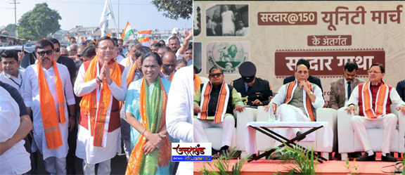 सीएम धामी ने कहा सरदार@150 यूनिटी मार्च के अंतर्गत उत्तराखंड सरकार ने देवभूमि उत्तराखंड के प्रत्येक जनपद में भी एकता यात्रा का आयोजन किया। मुख्यमंत्री ने बताया उन्होंने स्वयं चार प्रमुख स्थानों पर एकता यात्रा में प्रतिभाग किया है। एकता यात्रा के माध्यम से युवाओं को नशा मुक्ति, योग और स्वास्थ्य जैसे विषयों से जोड़ने के साथ सहकारिता मेलों का आयोजन कर स्थानीय हस्तशिल्प और स्वदेशी उत्पादों के प्रचार प्रसार की दिशा में भी कार्य किया गया है।