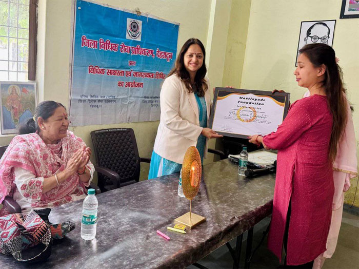 उत्तराखण्ड : 02 अप्रैल 2025 ,देहरादून। आज सचिव जिला विधिक सेवा प्राधिकरण देहरादून श्रीमती सीमा डुँगराकोटी द्वारा मस्तीज्यादे एनजीओ के फाउंडेशन डे में प्रतिभाग किया। मस्तीज्यादे फाउंडेशन बिना किसी आर्थिक सहायता के एनजीओ के सदस्यों द्वारा मिलकर चलाया जाता हैं और इसमें मुख्य रूप से गरीब बच्चों की शिक्षा पर कार्य किया जाता है व निर्धन व पिछड़े महिलाओं को आत्म निर्भर बनाया जाता है व व्यवसाय प्रारंभ करने के लिए उनकी आर्थिक रूप से सहायता भी की जाती है।