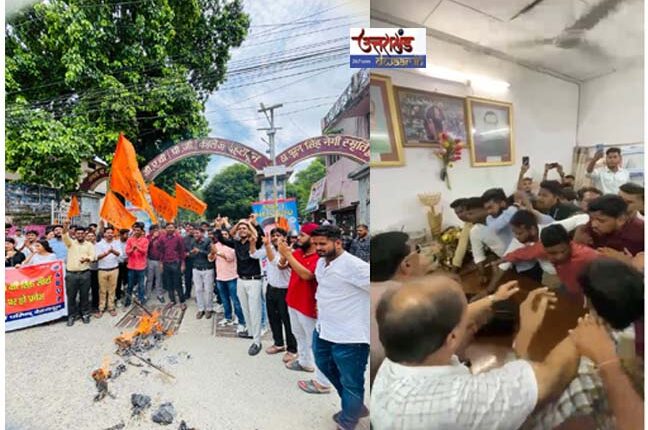 वही इस मौके पर इकाई अध्यक्ष अमन जोशी ने बताया कि हजारों छात्रों का भविष्य अंधकार में हैं विद्यार्थी परिषद प्रदेश भर के HNB से संबद्ध कॉलेज के माध्यम से पत्राचार कर रही हैं आंदोलन को आज दूसरा दिन ने लेकिन कुलपति की अब तक इसमें कोई प्रतिक्रिया नही आ रही हैं, जिसके विरोध में आज महाविद्यालय में पुतला दहन किया गया। वही छात्रों ने जमकर हंगामा काटा।