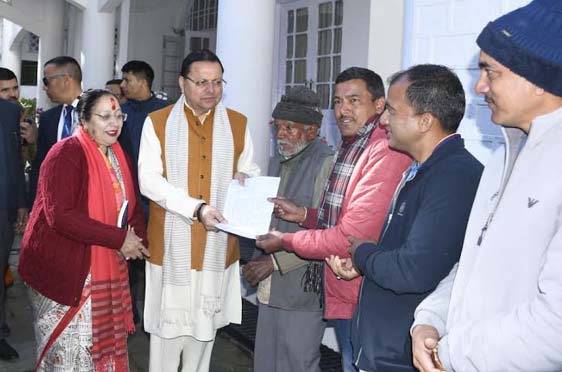 उत्तराखंड: 27 Nov.2025,ब्रहस्पतिवार को देहरादून । उत्तराखंड मुख्यमंत्री श्री पुष्कर सिंह धामी ने अपने नैनीताल प्रवास के दौरान प्रशासनिक अकादमी नैनीताल में जिले के विभिन्न क्षेत्रों से आई जनता से मुलाकात की व उनकी समस्याएं सुनी। उन्होंने सम्बंधित अधिकारियों को समस्याओं के निस्तारण हेतु आवश्यक निर्देश दिए। इस दौरान ग्राम सौड़ से आए ग्रामीणों द्वारा पंगोट देचौड़ी सड़क स्वीकृति पर मुख्यमंत्री जी का आभार व्यक्त किया। ग्रामीणों ने कहा कि काफी लंबे समय से उनकी सड़क निर्माण की जो मांग थी आज उनके द्वारा पूरी कर ली गई है, इससे क्षेत्र वासियों को सड़क सुविधा का लाभ प्राप्त होगा।