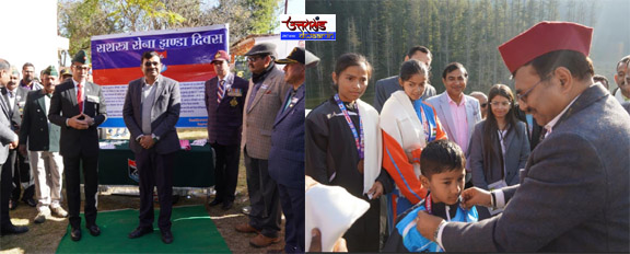उत्तराखण्ड: 02 Dec. 2025 मंगलवार को चम्पावत ।  मुख्य सचिव श्री आनन्द बर्द्धन ने अपने चम्पावत दौरे के दौरान उत्तराखण्ड शासन के जिला सभागार परिसर में भूतपूर्व सैनिकों से भेंट कर सशस्त्र सेना झंडा दिवस (Armed Forces Flag Day) के प्रति सम्मान प्रकट किया। मुख्य सचिव ने वीर सैनिकों के योगदान को नमन करते हुए फ्लैग लगाया।