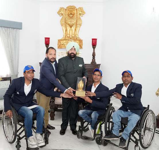 उत्तराखंड: 31 Dec.2025,बुधवार को देहरादून / राजधानी स्थित उत्तराखंड लोक भवन में राज्यपाल लेफ्टिनेंट जनरल गुरमीत सिंह (से नि) से बुधवार को उत्तराखण्ड यूनाइटेड दिव्यांग क्रिकेट एसोसिएशन के सदस्यों ने शिष्टाचार भेंट की। इस दौरान उन्होंने राज्यपाल को अवगत कराया कि भारतीय व्हीलचेयर क्रिकेट टीम ने हाल ही में भोपाल (मध्यप्रदेश) में आयोजित अंतर्राष्ट्रीय टी-20 प्रतियोगिता में भारत, श्रीलंका एवं नेपाल के मध्य हुए मुकाबलों में उत्कृष्ट प्रदर्शन करते हुए फाइनल में श्रीलंका को पराजित कर विजेता बनी। इस उपलब्धि में उत्तराखण्ड यूनाइटेड दिव्यांग क्रिकेट एसोसिएशन से जुड़े तीन खिलाड़ियों कप्तान मनोज परमार, विकास लांबा और हरेन्द्र सिंह का महत्वपूर्ण योगदान रहा।