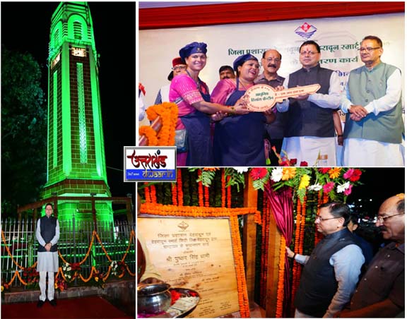 उत्तराखंड: 06 सितंबर. 2025, शनिवार को देहरादून / राजधानी स्थित सायं 6ः30PM बजे मुख्यमंत्री श्री पुष्कर सिंह धामी ने  देहरादून के केंद्र बिंदु माने जाने वाले ऐतिहासिक घण्टाघर के सौंदर्यीकरण, भव्य रूपांतरण एवं स्वचालित प्रकाश व्यवस्था का विधिवत शुभारंभ किया। इसके साथ ही मुख्यमंत्री ने घण्टाघर क्षेत्र में महिला स्वयं सहायता समूहों (SHGs) के लिए निर्मित 4 अत्याधुनिक “हिलांस-कम-किचन आउटलेट्स” का भव्य शुभारंभ किया। यह पहल महिला सशक्तिकरण, स्वरोजगार और स्थानीय पहाड़ी उत्पादों के प्रचार-प्रसार को सशक्त बनाने के उद्देश्य से की गई है।