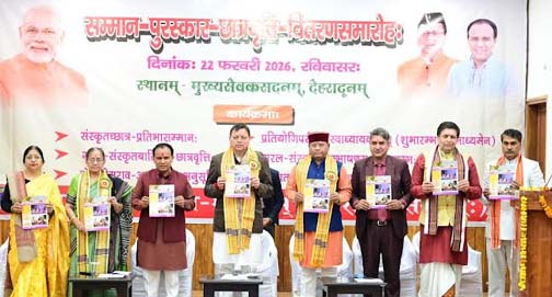 उत्तराखंड: 22 FEB.2026, रविवार को देहरादून ।  मुख्यमंत्री कैम्प कार्यालय स्थित मुख्य सेवक सदन में मुख्यमंत्री श्री पुष्कर सिंह धामी ने संस्कृत छात्र प्रतिभा सम्मान कार्यक्रम में भाग लिया। इस अवसर पर उन्होंने गार्गी बालिका संस्कृत छात्रवृत्ति, डॉ. भीमराव अंबेडकर अनुसूचित जाति, अनुसूचित जनजाति संस्कृत छात्रवृत्ति भी विद्यार्थियों को प्रदान की। कार्यक्रम के दौरान मुख्यमंत्री ने प्रतियोगी परीक्षा स्वाध्याय केन्द्र एवं ई-संस्कृत संभाषण शिविर का वर्चुअल शुभारंभ और उत्तराखण्ड संस्कृत विश्वविद्यालय के त्रैमासिक पत्र संस्कृत वार्ता का विमोचन भी किया।