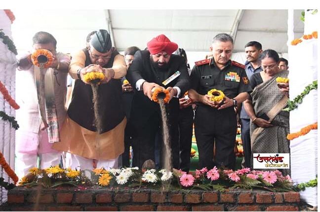 देहरादून/उत्तराखण्ड: 03 JULY .. 2023, खबर… राजधानी से सोमवार को देहरादून स्थित गुनियाल गांव, देहरादून स्थित सैन्यधाम में शहीदों के आंगन की पवित्र माटी के प्रतिस्थापना समारोह में उत्तराखण्ड राज्यपाल लेफ्टिनेंट जनरल गुरमीत सिंह (से नि) ने प्रतिभाग किया। वही इस अवसर परसैनिक कल्याण मंत्री उत्तराखण्ड सरकार गणेश जोशी की अध्यक्षता में हुए इस समारोह में सीडीएस जनरल अनिल चौहान बतौर विशिष्ट अतिथि उपस्थित रहे। कार्यक्रम में राज्यपाल, सैनिक कल्याण मंत्री, सीडीएस एवं उपस्थित वीर नारियों द्वारा शहीदों के आंगन की पवित्र मिट्टी के साथ-साथ प्रदेश की प्रमुख नदियों के पवित्र जल को सैन्यधाम में निर्मित होने वाली ‘अमर जवान ज्योति’ की आधारशिला में अर्पित किया।