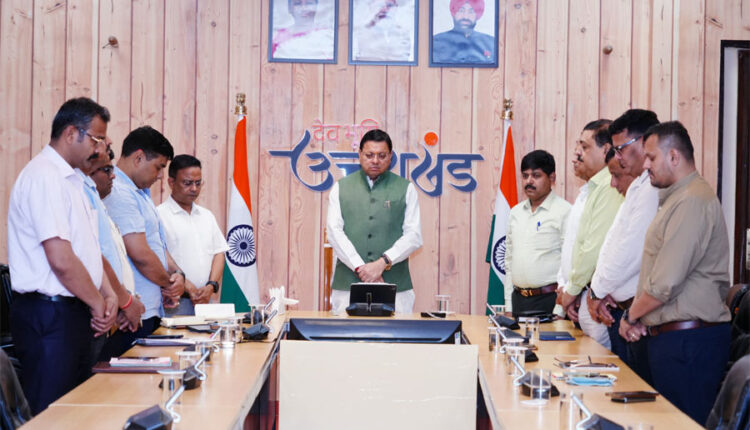 उत्तराखण्ड : 23 अप्रैल 2025 ,देहरादून। मुख्यमंत्री श्री पुष्कर सिंह धामी की अध्यक्षता में आज सीएम आवास में आयोजित प्रातःकालीन बैठक में दो मिनट का मौन रखकर जम्मू-कश्मीर के पहलगाम में पर्यटकों पर हुए कायराना आतंकी हमले में मारे गए निर्दोष लोगों को श्रद्धांजलि अर्पित की गई।