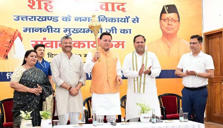 उत्तराखंड: 20 मई 2025 मंगलवार को देहरादून स्थित मुख्य सेवक सदन में आज मुख्यमंत्री श्री पुष्कर सिंह धामी ने शहरी विकास विभाग द्वारा आयोजित शहर से संवाद कार्यक्रम में राज्य के सभी नगर निगम एवं नगर पालिकाओं के जनप्रतिनिधियों से संवाद किया। इस अवसर पर मुख्यमंत्री ने शहरी विकास विभाग द्वारा महिला स्वयं सहायता समूहों की सहायता हेतु तैयार तीन वेब पोर्टल लॉन्च किए।इस अवसर पर मेयर देहरादून श्री सौरभ थपलियाल, सहित सभी नगर निगमों के मेयर, नगर पालिकाओं के अध्यक्ष, सचिव श्री नितेश कुमार झा, नगर आयुक्त श्रीमती नमामि बंसल, शहरी विकास विभाग के अधिकारी तथा विभिन्न स्थानीय निकायों के 100 से अधिक जनप्रतिनिधि मौजूद रहे।